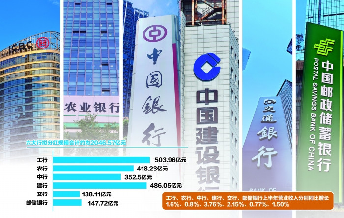 六大行延续了“大手笔”中期分红。根据2025年中期分红计划,六大行拟分红规模合计约为2046.57亿元。