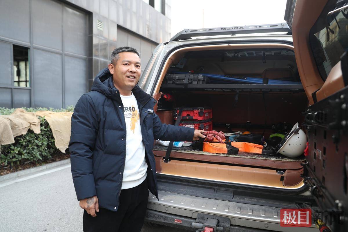 作为一名越野爱好者,詹时美的车上常年备有拖车绳等工具。担心不够用,他又从家里取出一根带上。由于大雪导致交通不畅,他花费40分钟才绕行至堵车现场。抵达后,他迅速投入救援,逐一帮助受困车辆拖车上坡。