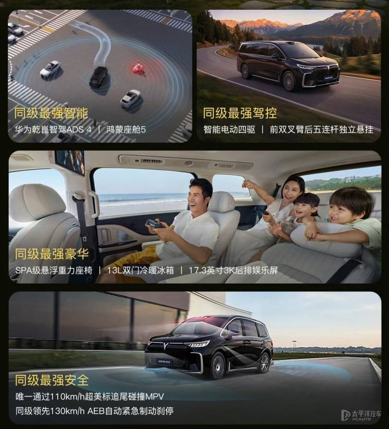 在配置方面,岚图梦想家冠军版将会配备悬浮重力座椅、13L双门冷暖冰箱、后排17.3英寸3K娱乐屏等功能,并搭载华为乾崑智驾ADS4和鸿蒙座舱5,支持高速/城区领航辅助驾驶、全场景智能泊车等功能。