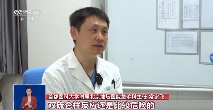 首都医科大学附属北京地坛医院急诊科主任 常宇飞:“双硫仑样反应”是比较危险的,因为它也分轻、中、重度,就像中暑、失温一样。