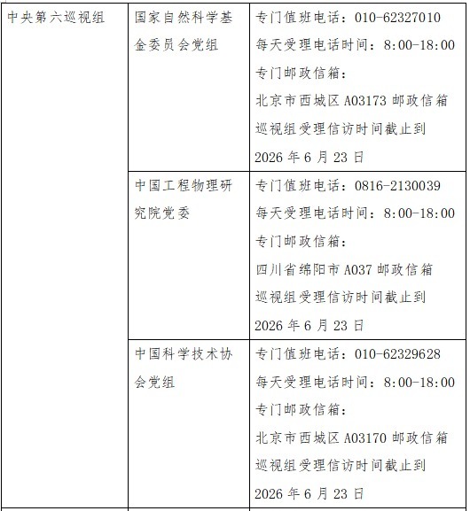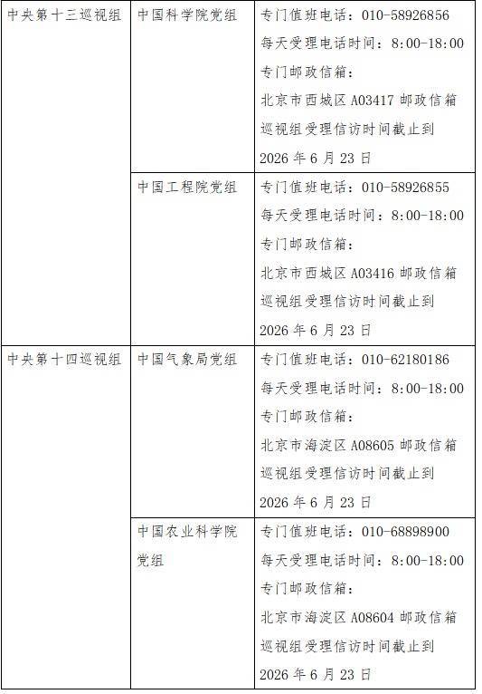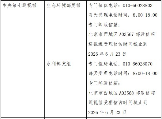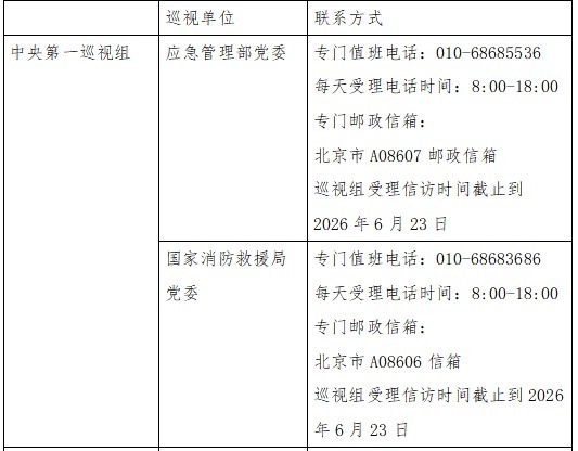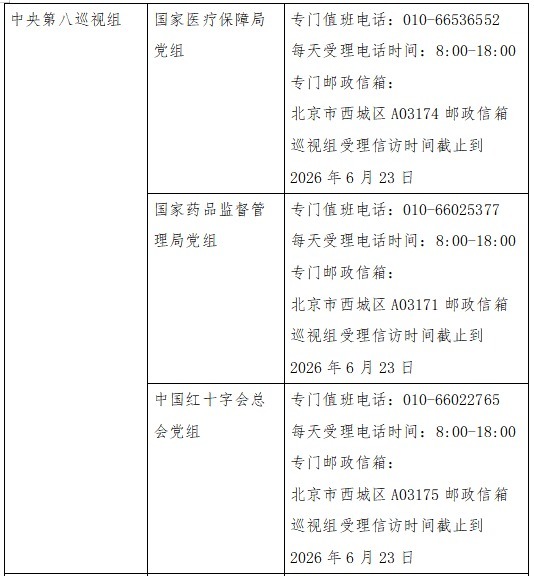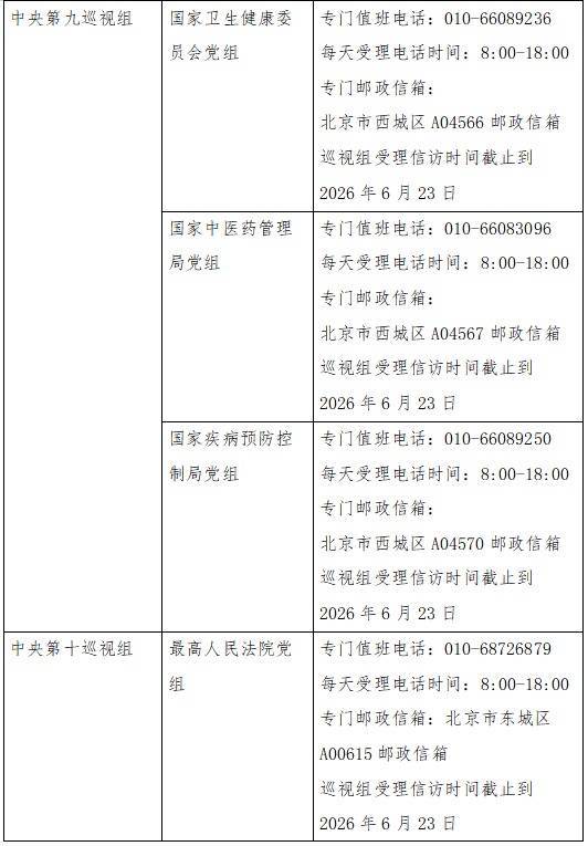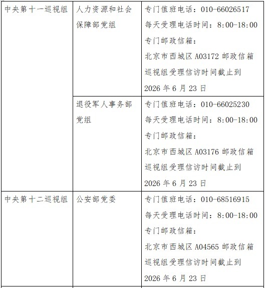 已进驻中央巡视组联络方式: