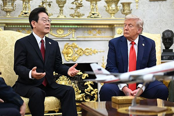 当地时间8月25日,李在明和特朗普在白宫会晤视觉中国